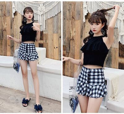 水着 レディース 体型カバー 露出控え ビスチェ レディース水着 タンキニ セパレート オトナ女子 みずぎ 韓国ファッション チェック柄 小胸も安心 海 プール リゾート 旅行 送料無料