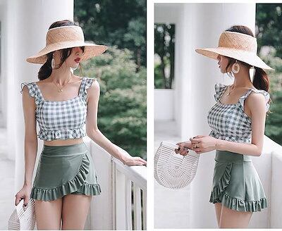 水着 レディース 体型カバー 可愛い フリル 小胸 水着 韓国 水着 タンキニ 水着 タンキニ 露出控えめ セパレート 上下セット スカート 可愛い水着 安全パンツ みずぎ 学生 レディース スイ