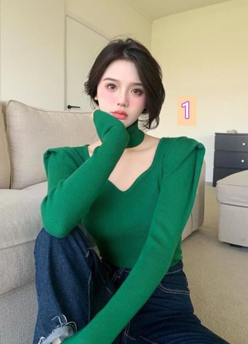 2022春秋新作 レディース 女 長袖 無地 ニット トップス Tシャツ インナー 6色