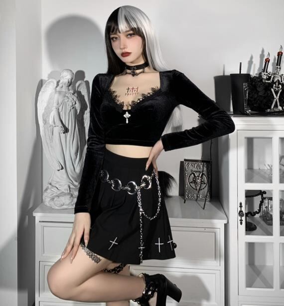2022春秋新作 レディース 女 長袖 ベロア レース トップス Tシャツ インナー S-L