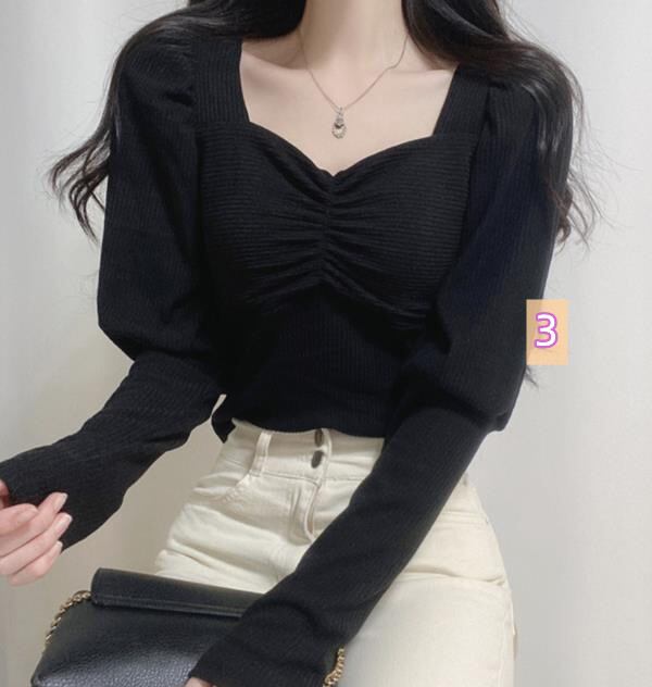 2022春秋新作 レディース 女 長袖 無地 ニット 毛糸 トップス Tシャツ インナー カットソー 3色 S-L