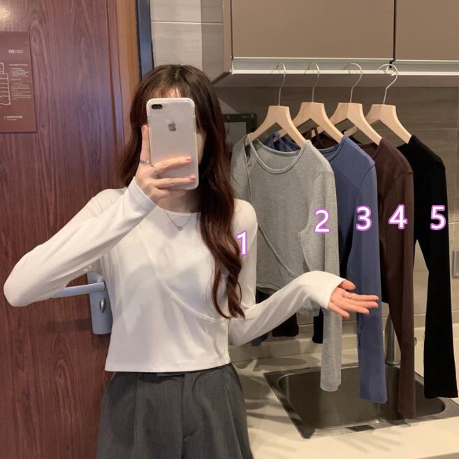 2022春秋新作 レディース 女 長袖 無地 丸首 トップス Tシャツ インナー 5色