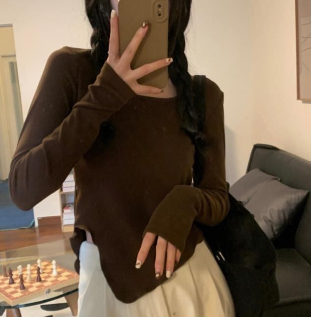 2022春秋新作 レディース 女 長袖 無地 トップス Tシャツ インナー 3色