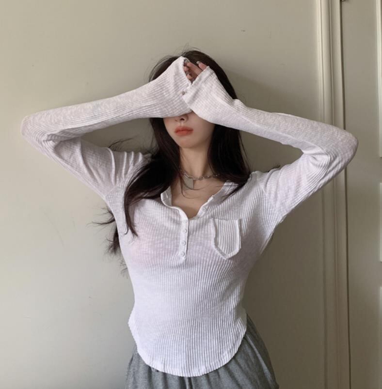 2022春秋新作 レディース 女 トップス 長袖 無地 ニット セーター Tシャツ インナー カットソー 2色