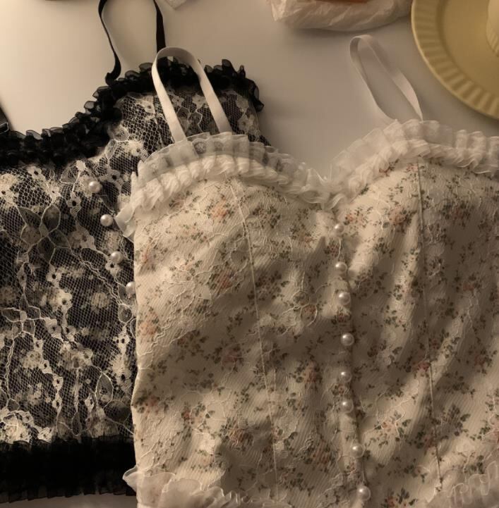 春秋新作 レディース 女 トップス 袖なし パール レース 花柄 Tシャツ インナー タンクトップ キャミソール