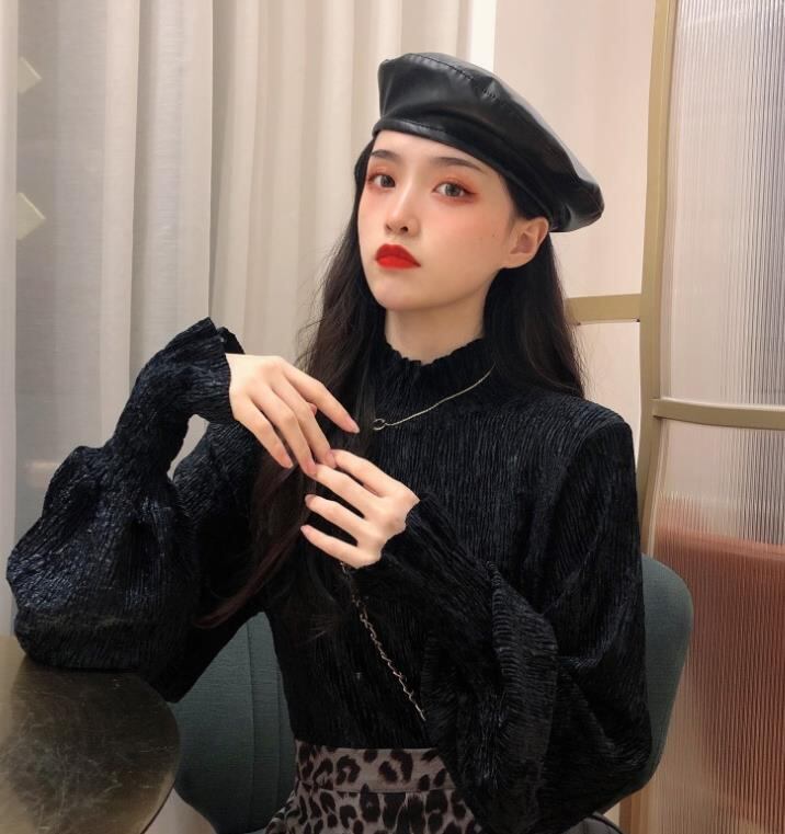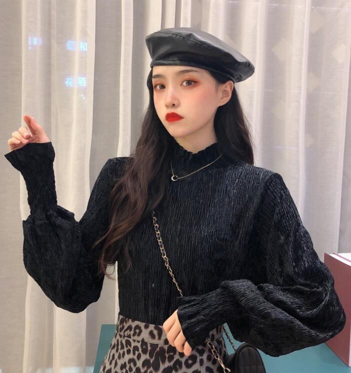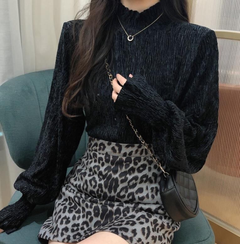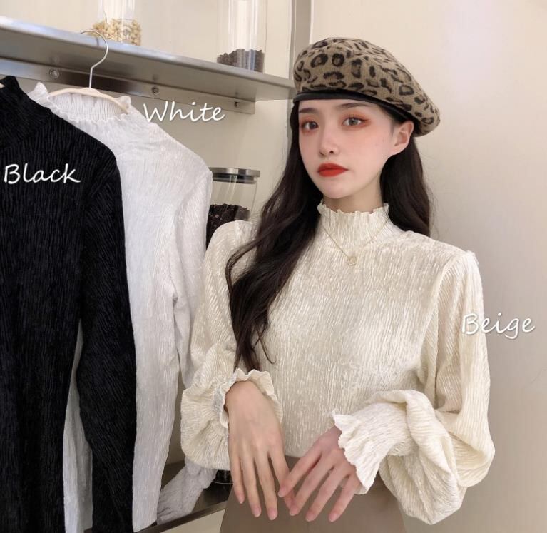 2022春秋新作 レディース 女 トップス 長袖 ベロア ハイネック Tシャツ インナー 3色