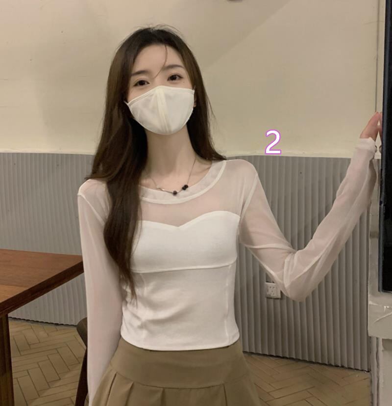 2022春秋新作 レディース 女 トップス 長袖 チュール Tシャツ インナー カットソー 3色