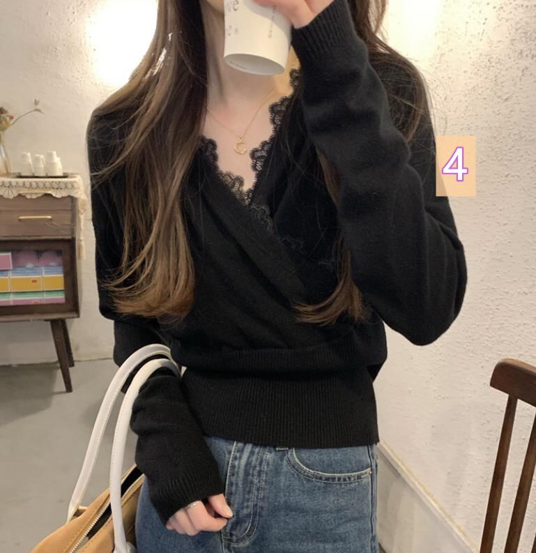 2022春秋新作 レディース 女 長袖 レース ニット トップス Tシャツ インナー カットソー 4色