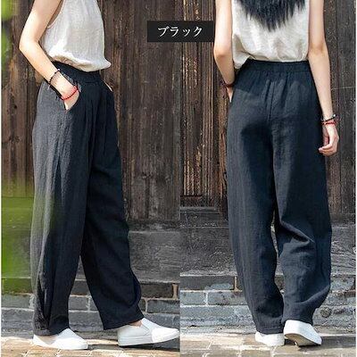 イージーパンツレディース夏リネンサルエルパンツ薄ワイドパンツバルーンパンツリネン綿麻きれいめ無地大人リラックスロングパンツ