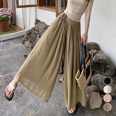 とろみパンツレディース綿麻スカンツ夏ワイドパンツ春夏秋きれいめガウチョパンツリネンハイウエストフレアパンツ薄ロングパンツナチュラル韓国