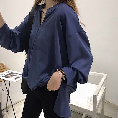 スキッパーブラウスシャツトップスシンプルきれいめオフィスサイドスリット長袖おすすめレディースオシャレトレンド人気プチプラ韓国ファッション