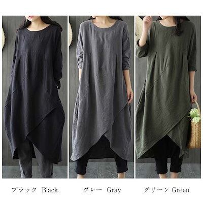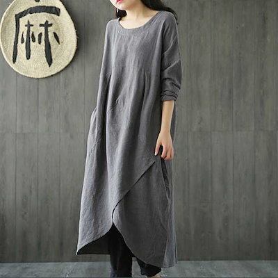 ボートネックヘムロングワンピースリネン風ゆったり楽ちんリラックスカジュアルおすすめレディースオシャレトレンド人気プチプラ韓国ファッション