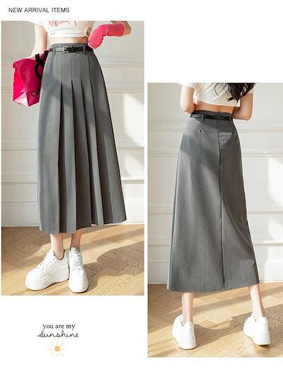 プリーツスカートAラインミモレ丈ハイウエストボトムスオフィスきれいめ女子会ミドル丈おすすめレディーストレンド人気プチプラ韓国ファッション
