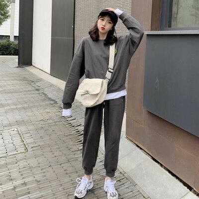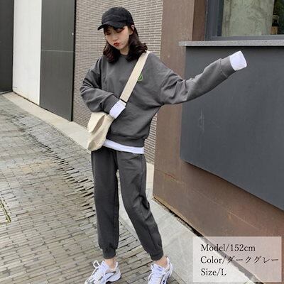 スウェットセットアップレディースジャージ長袖スポーツウエアロングパンツ上下セットラウンドネックトレーナー
