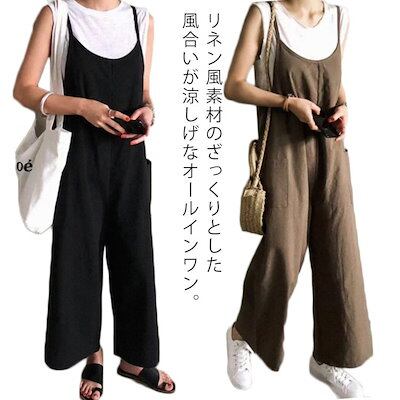 ロングパンツワイドパンツ大きいサイズオールインワンキャミサロペットパンツおしゃれスカンツ無地ゆったりボトムスガウチョオーバーオール春夏大人おしゃれ体型カバーきれいめオフィス仕事リネン風