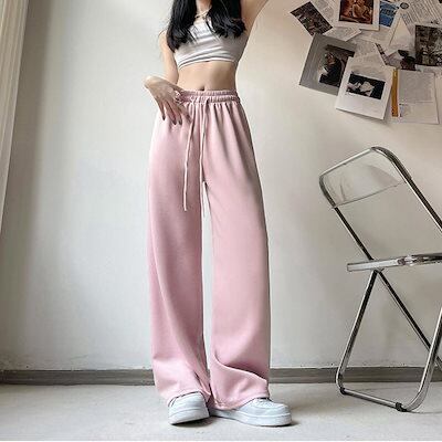 スウェットパンツイージーパンツ韓国レディース作ドローストリングウエストゴムゆったりランニングウェアオルチャンストリートダンスボトムス
