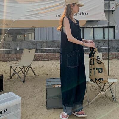 オールインワンサロペットデニムレディースパンツカジュアルおしゃれ体型カバージャンプスーツオーバーオールワイドレッグゆったりルーズロング丈シンプルかっこいいオールシーズンブルー春夏20304050