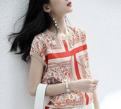 Tシャツレディース半袖安いおしゃれ韓国風夏40きれいめトップス半袖tシャツブラウス花柄シフォンカジュアル体型カバー大きいサイズ着痩せ