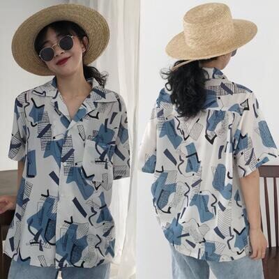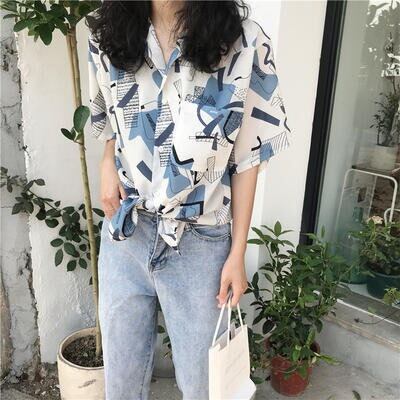 トップスレディースブラウスきれいめカジュアルおしゃれ薄カットソーシャツ大人可愛い半袖総柄こなれ感体型カバー大きいサイズ韓国コーデホワイト白20304050