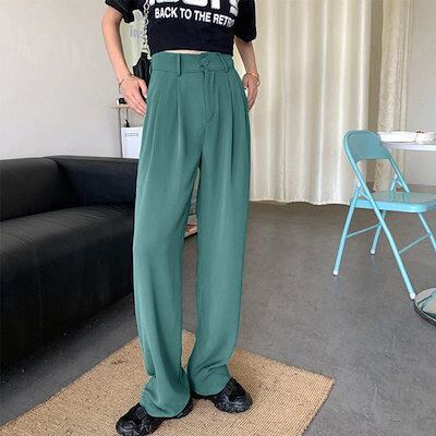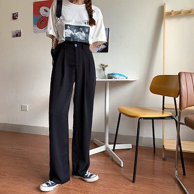セミワイドパンツレディースロングパンツストレートスーツパンツ薄ボトムス大人脚カジュアルシルエット春夏