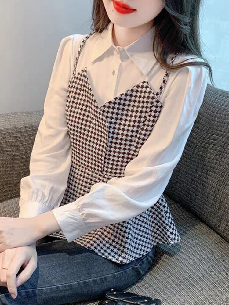 初回送料無料 春夏新作レディースファッション カジュアル フェイク2枚 人気 長袖 トップス