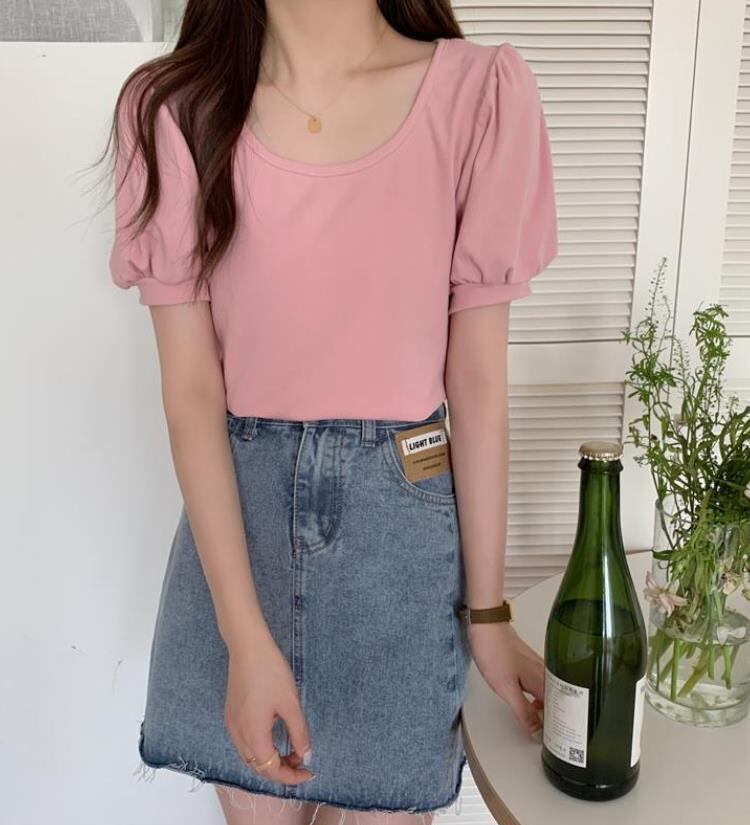 2022春夏新作 レディース 女 丸首 無地 半袖 Tシャツ トップス インナー 5色
