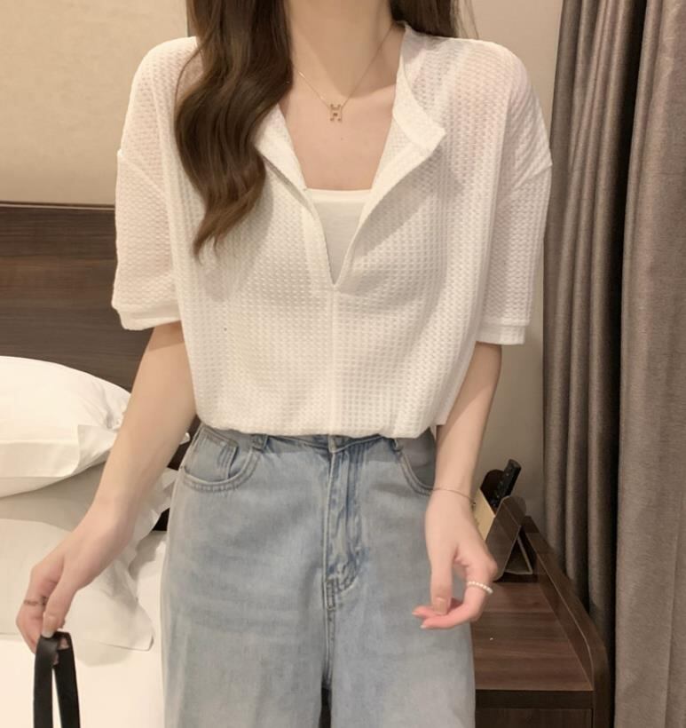 2022春夏新作 レディース 女 丸首 半袖 Tシャツ トップス インナー 6色