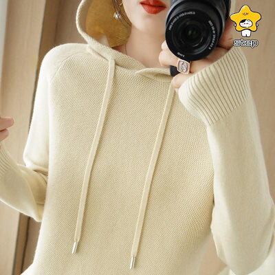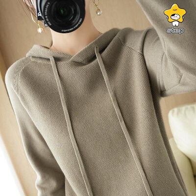 パーカー レディース ニット 厚手 長袖 セーター プルオーバー フード付き トップス カジュアル 春秋 秋冬 カットソー トレーナー ゆったり 体型カバー