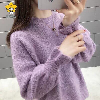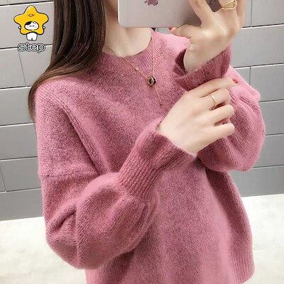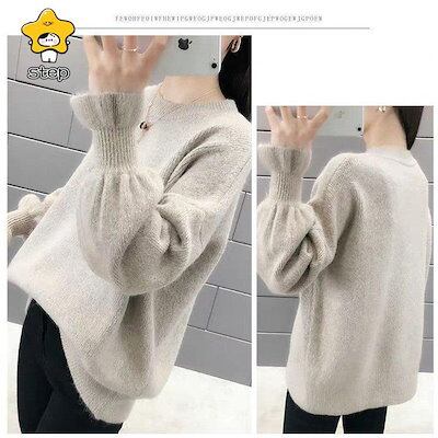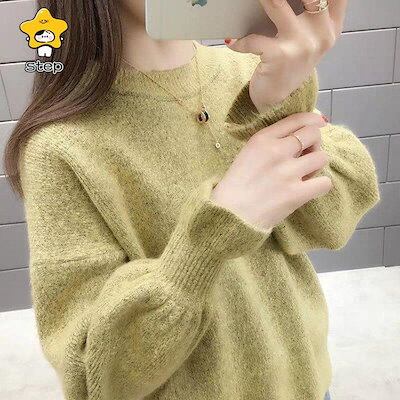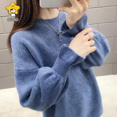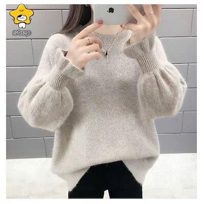 ニットセーター レディース 秋冬 40代 長袖 ニットトップス 無地 セーター パフスリーブ ショット丈 無地セーター ゆったりプルオーバー 厚手 おしゃれ
