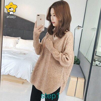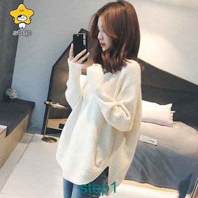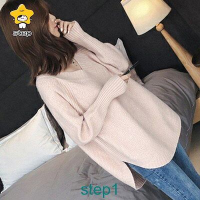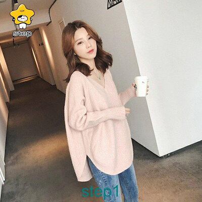 ニットセーター レディース 秋冬 40代 トップス 長袖 厚手 ニットソー 無地 vネック 韓国風 ショート丈 ニットトップス ゆったり セーター 通勤 着痩せ 4色