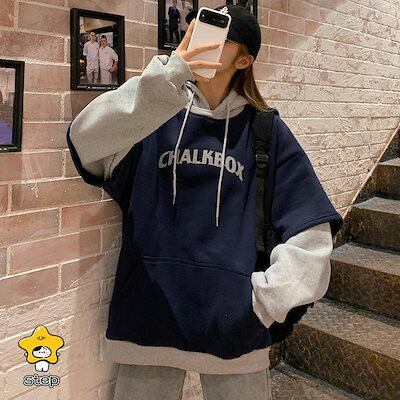 パーカー レディース 韓国ファッション ストリート系 原宿 裏起毛 長袖 ロゴ 安い ビッグ 大きいサイズ 秋 冬 10代 20代 30代 大人 学生
