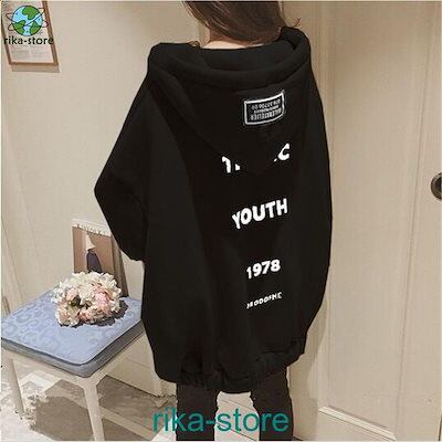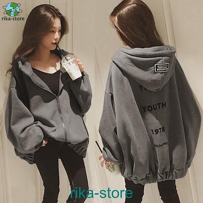 パーカー レディース 韓国 シンプル 裏起毛 秋冬 フード付き チュニック ロング 前開き ゆったり ジップアップ アウター 羽織り 長袖 カジュアル
