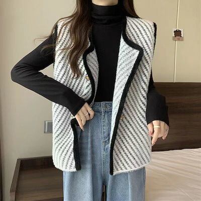 ベスト ダブルブレスト ウエストコート ジャケット レディース 秋冬 テンパメント 薄手 ニット