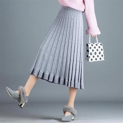 マキシスカート 脚魅せミニスカート マーメイドスカート 夕イトスカ一トニット プリーツスカート セミロング丈 女 スカート 2022新作 厚手 ハイウエスト Aライン 毛糸スカート