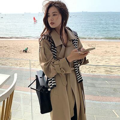 春 アウター コート 日系 ジャケット 垂れ感 トレンチコート 気質 セミロング スリミング トップス ロングコート 着痩せ アウター レディース
