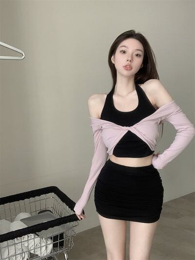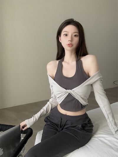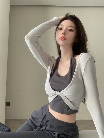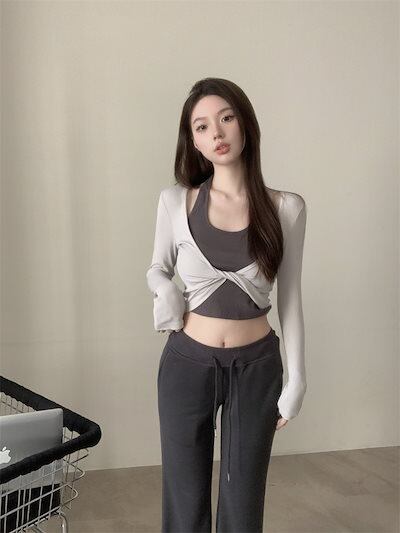 2024秋 長袖 Tシャツ ショート丈 カットソー トップス カジュアル 配色 韓国系ストリート ロゴ へそ出し タイトネックスリーブ 肌見せ T ファッションレディース かわいい衣装風冬トップス