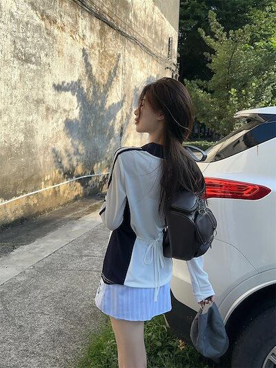 2024秋 長袖 Tシャツ ショート丈 カットソー トップス カジュアル 配色 韓国系ストリート ロゴ へそ出し タイトネックスリーブ 肌見せ T ファッションレディース かわいい風冬トップス