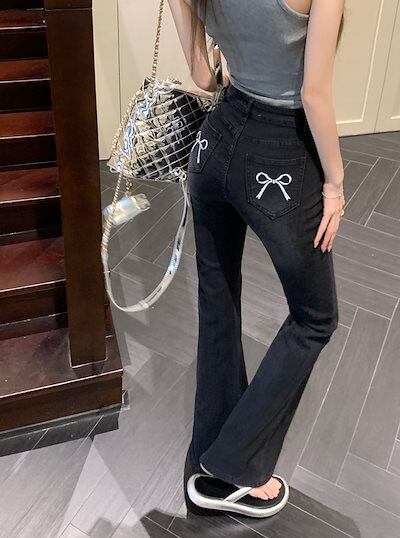 2024秋 パンツ デニム ジーンズ ロング丈 ハイウエスト 美脚効果 脚長効果 細見え ウォッシュ加工 冬 春 おしゃれ かわいい 韓国ファッション系 お出かけ