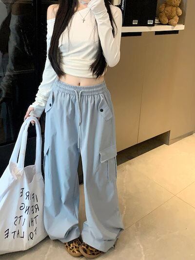 2024 夏パンツ ロング丈 ワイド ストレート ハイウエスト 美脚効果 脚長効果 細見え 夏 水色 黒 緑 おしゃれ かわいい 韓国ファッション レディース お出かけ