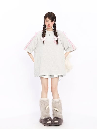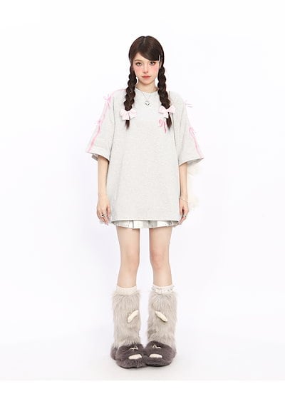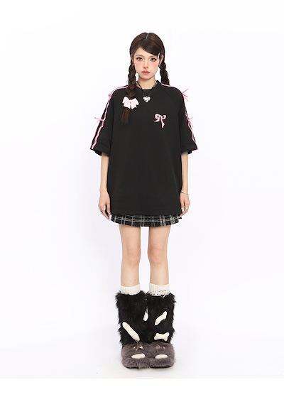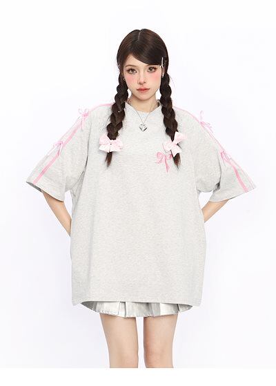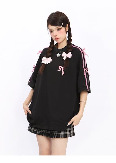 2024夏 韓国可愛い風トップス Tシャツ ファッション系 半袖 スリムフィット サイド ペイントシルエット ゆったり丈 ロングレディースサイズ韓国Vネックおしゃれカジュアルメンズライク T