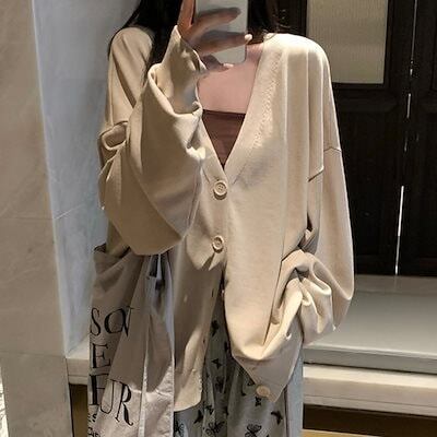2024 夏トップス カーディガン 長袖 ボタン Vネックゆったり 大きめサイズ 丈長め 細見え 夏 赤 レッド おしゃれ かわいい 韓国ファッション レディース お出かけ