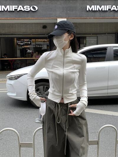 2024春夏 アウター ショート ブルゾン かわいいフル ブルゾン トップス ハイスタンド ショートストリートレディース長袖 カジュアル ファッションお出かけトラック