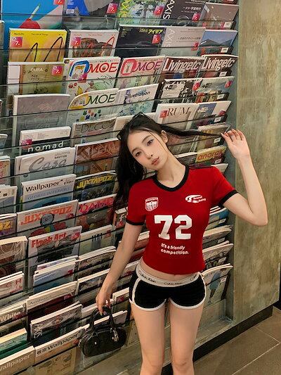 2024 春夏トップス プリント半袖 Tシャツ 韓国 ラウンドネックロゴスリム 可愛い風へそ出し ショート おしゃれスリーブ カジュアルサイドコーデ丈 ファッション系レディースストリートお出かけ T