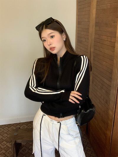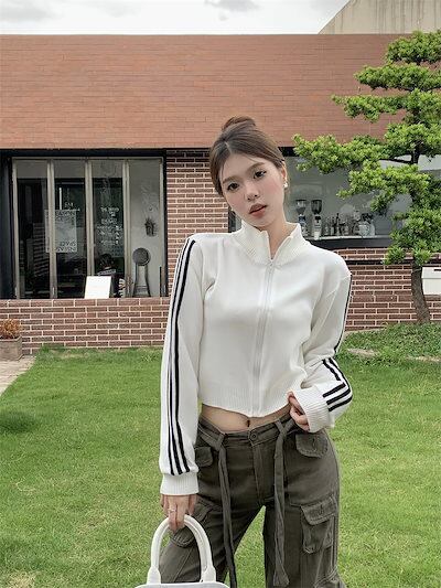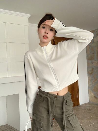 2024 秋 韓国 かわいい ニットネック レディース アウター ブルゾン お出かけ ブラック ライトカーキ アウター長袖セクシートップスサイド冬カジュアルファッション系お出かけフル丈トラック