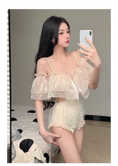 2024 春夏 露出を控えた ファッション ビキニ スイムウェア付き タンキニセパレート スタイルアップ 海プール可愛い海水浴花 大人女子水着 レディース スリーブフレンチ