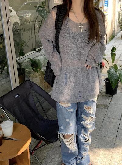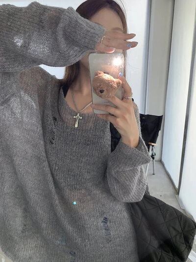 2024春夏 長袖 ニット プルトップスストリートカジュアエコルシルエットクルーネック加工色っぽ 女っぽ カジュアル 大人っぽ 上品 サイズフェミニンゆったりカジュアル レディースゆったり秋冬春
