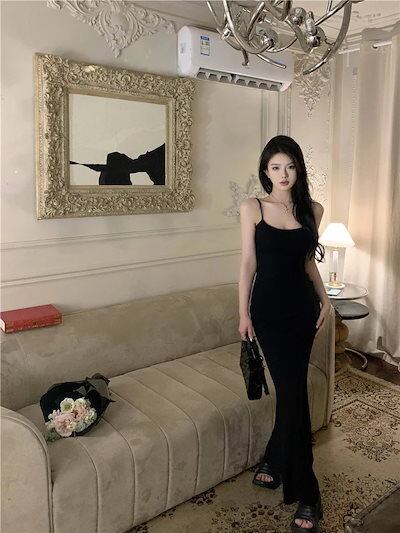 2024夏 韓国 ワンピース ロング丈 ゆったり Vネック キャミソール ハイウエスト フィッシュテールかわいい カジュアル おしゃれ 夏 ファッション フィッシュテールフレンチお出かけ
