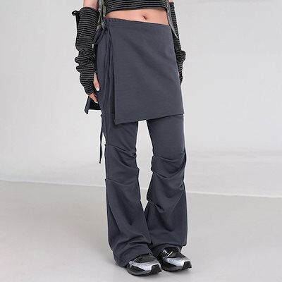 2024 春夏パンツ ロング丈 ワイド 韓国ストリート ハイウエスト 美脚効果 脚長効果 細見え かわいい ゆったり ルーズ カジュアル ファッション系 レディース お出かけ