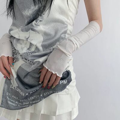 レース フェイクパール ロング アイスシルク グローブ紫外線対策 UVケア 透け感 手袋 運転 冷え対策 レディース フェミニン春夏秋