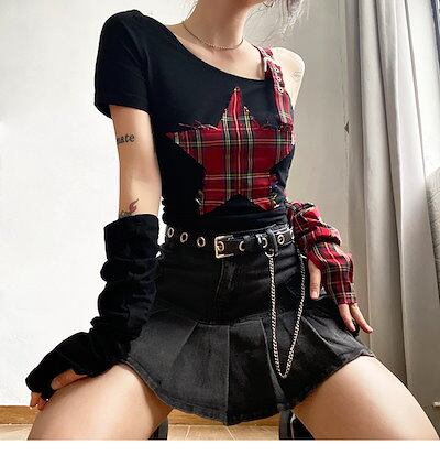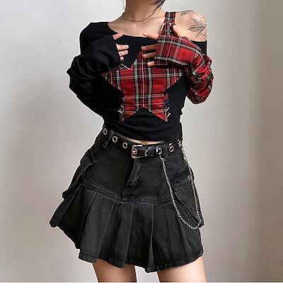 2024春秋 トップス 半袖 可愛い 韓国 Tシャツ ロンT タイト 肌見せフィット 夏 女っぽレディースギンガムチェックファッション系ショート おしゃれ カジュアルセクシー カバー きれいめ付きT星